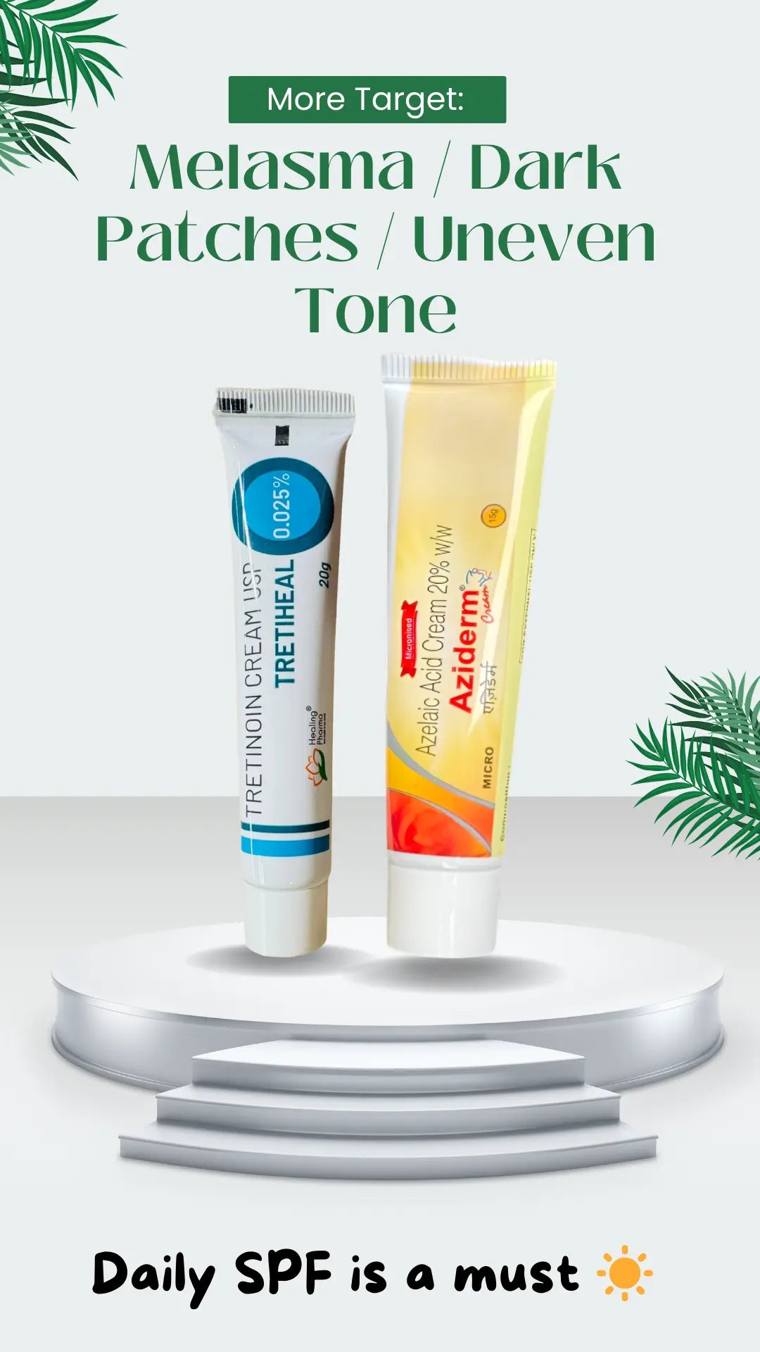 Azelaic Acid 20% & Tretinoin 0.025% — a simple routine for dark patches and uneven tone.